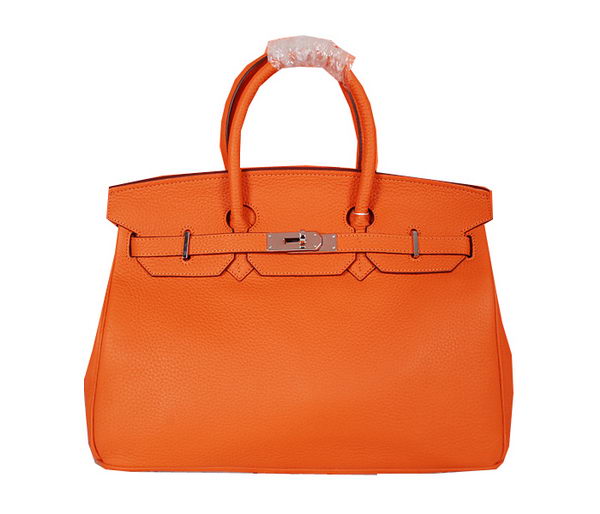 Home » Replica Handbags >> Hermes Handbag >> Hermes Birkin 35CM >> Hermes Birkin 35CM Tote Bag Orange Original Grainy Leather H35 Silver