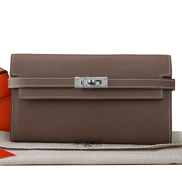 - Hermes Kelly Original Leather Bi-Fold Wallet A708 Light Gray