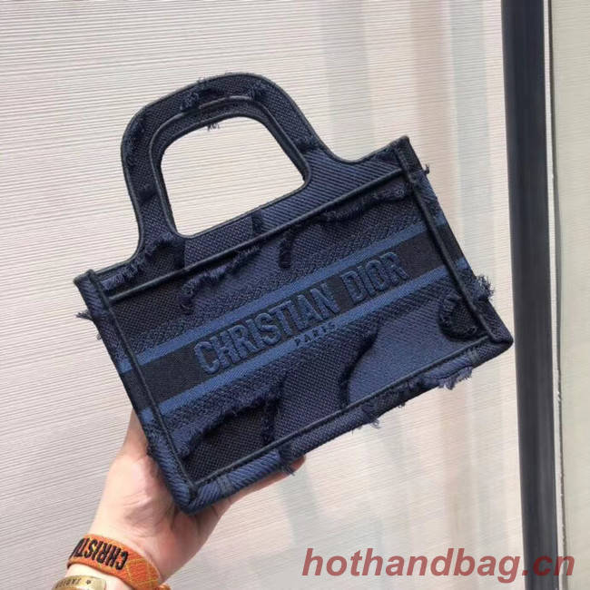 MINI DIOR BOOK TOTE ORIGINAL DIOR OBLIQUE EMBROIDERED CANVAS BAG M974 blue